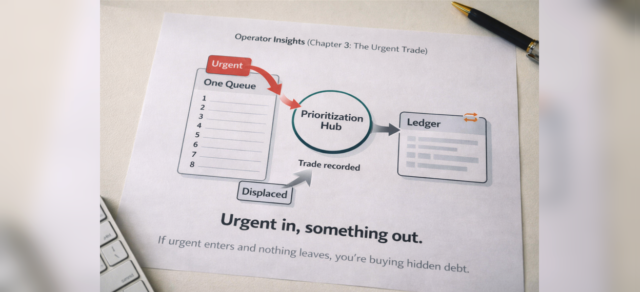 If you’re joining on chapter five: Chapter one covers why side doors create surprises and why the first fix is routing exceptions into a single hub. Chapter two covers the One Queue Rule, because once work is routed you still fail if the org runs on two backlogs. Chapter three covers the Urgent Trade, because urgent will break the ordering unless you force explicit displacement. Chapter four covers the WIP Trap, because nothing is forecastable when everything is started and nothing is finishing.